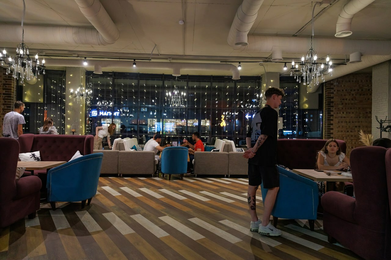 Теперь «Огни» - это просторный лаундж с панорамными окнами, город остаётся где-то снаружи, а внутри - свой ритм. Здесь не торопят, не отвлекают и не мешают быть в моменте. Здесь собираются компаниями, разговаривают, молчат, смеются и просто отдыхают.